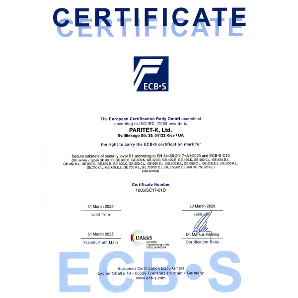 Встроенный электронный кодовый сейфовый замок M-LOCKS с сертификатом класса VDS 2;