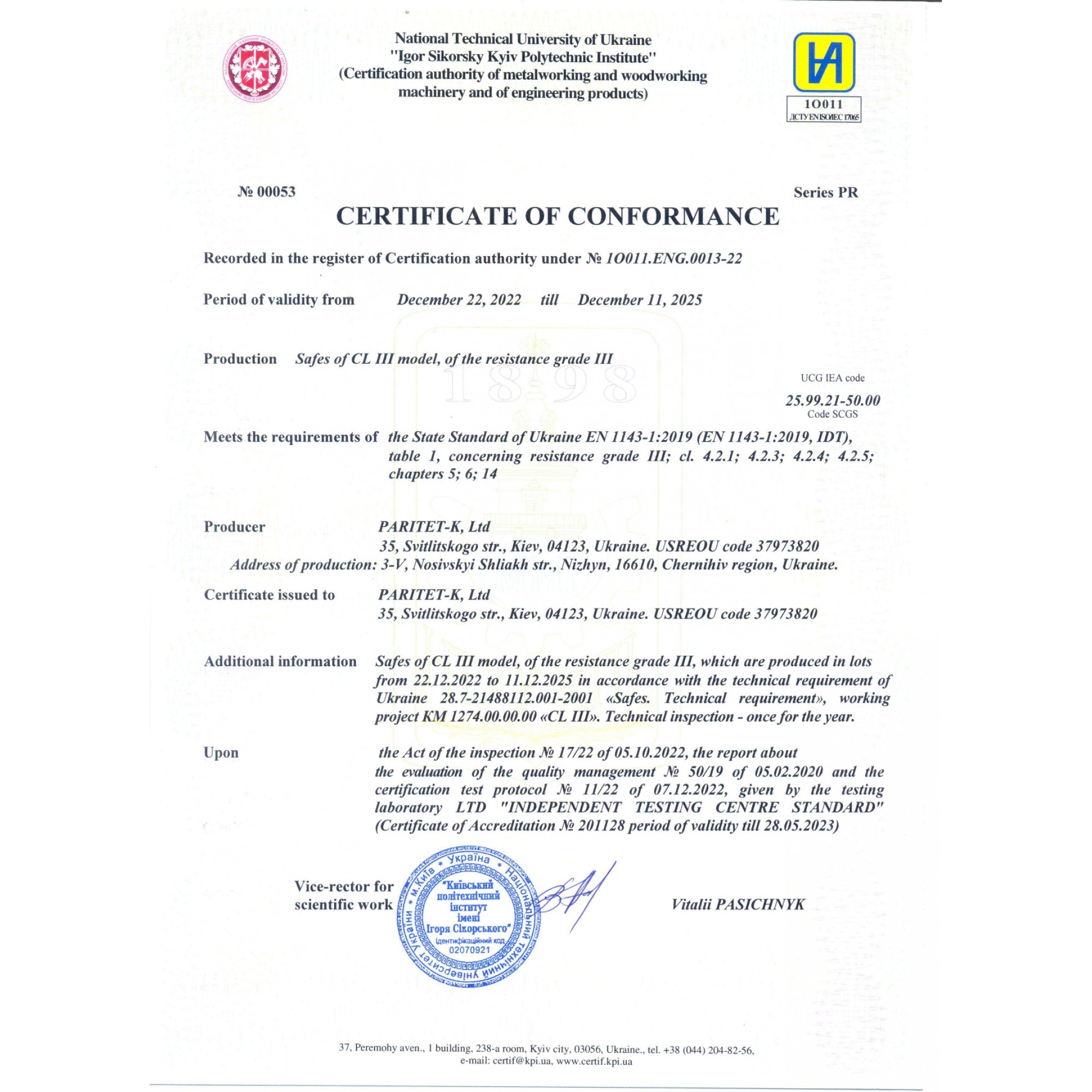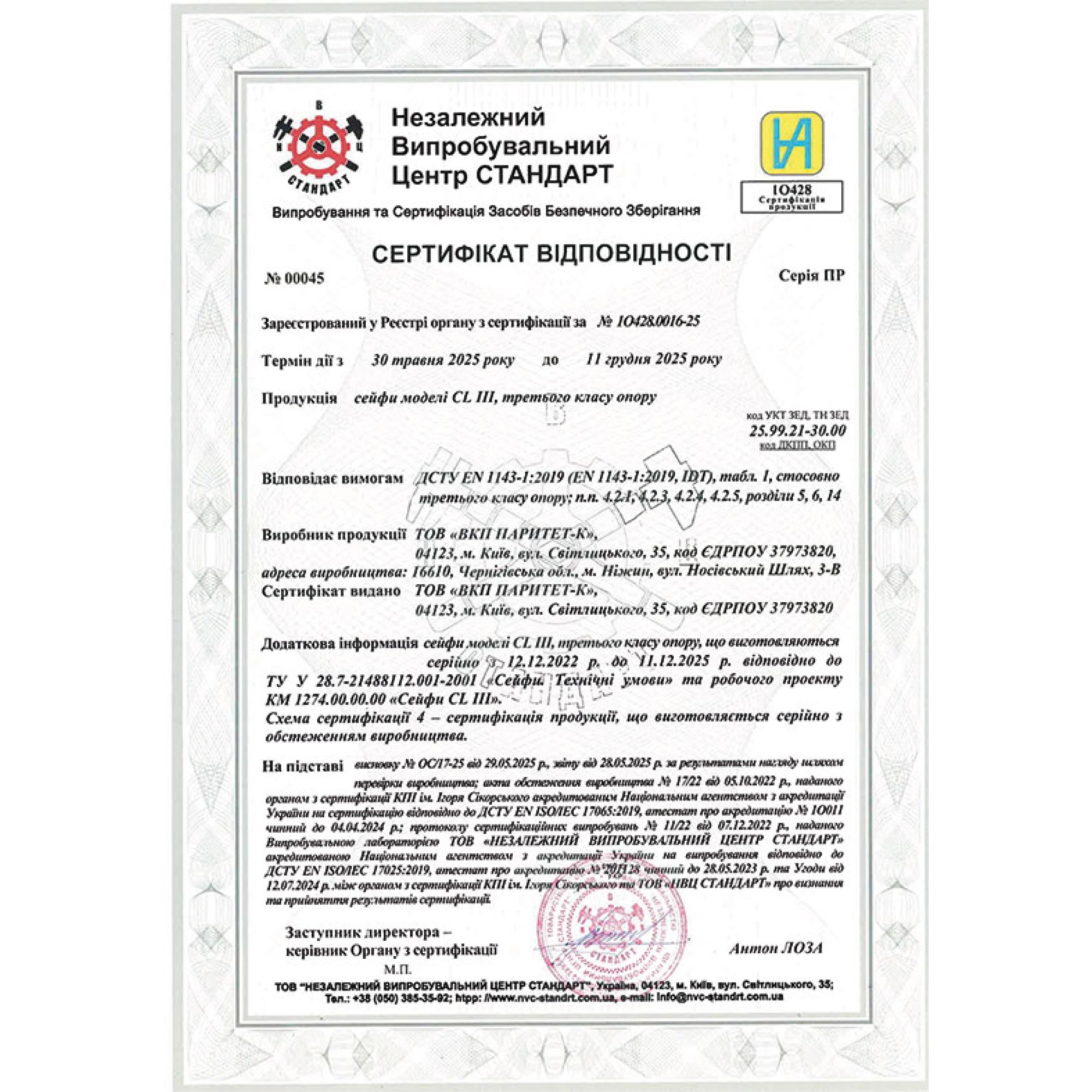 Сейф огневзломостойкий Griffon CL III.50.KC - надежная модель серии CL, сертифицированная по ДСТУ EN 1143-1 (III уровень защиты от взлома) и ДСТУ EN 15659 (LFS 30P — огнестойкость до 30 минут). В случае пожара в течение 30 минут температура внутри сейфа не превышает 170°C, что позволяет сохранить ценности и бумажные документы невредимыми.